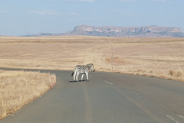 Halverwege de middag komen we bij Sterkfontein Dam Nature Reserve, een groot reservaat gelegen ten zuiden van Harrismith. Het omvat ondermeer een natuurpark waar we een kleine drie kwartier doorheen rijden. We zien hier ontzettend veel dieren. Verschillende antilopesoorten, vogels, zebra's en voor ons de eerste keer, het black wildebeest, de witstaartgnoe. Het ontbreekt ons aan tijd, anders hadden we hier nog wel langer rond willen rijden.