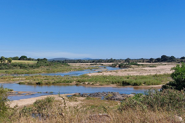 Rond 13:00 uur zijn niet ver van Crocodile Bridge af waar we de zgn. Hippo Pool bezoeken. Eigenlijk een uitzichtpunt over de rivier waar we, in de verte, inderdaad nijlpaarden zien en een grote verscheidenheid aan vogels. Het is eigenlijk allemaal veel te ver weg dus we volstaan met meteen maar een kopje koffie nemen en een sneetje brood. Hierna nemen we de grote weg richting Lower Sabie maar na een kilometer of 10 keren we om en rijden naar het kamp.
