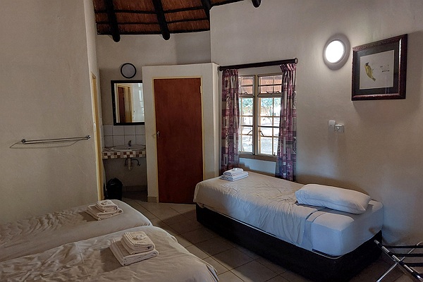 We lopen een rondje over het kamp en ontdekken dat het in vergelijk met andere main camps vrij klein is. Over het terrein lopen veel mongoesten, wrattenzwijnen en een paar bushbucks. Halverwege ons wandelingetje doen we even wat noodzakelijke boodschappen in de kleine shop waar we Danie en Elsa treffen. Een Zuid Afrikaans ouder echtpaar die we eerder gesproken hebben in Byamiti. Samen met hen zitten we korte tijd voor onze hut te kletsen met wat te drinken waarna we wat te eten nemen.