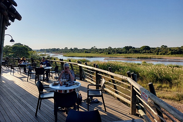 Het terras van het restaurant bij Lower Sabie Rest Camp.