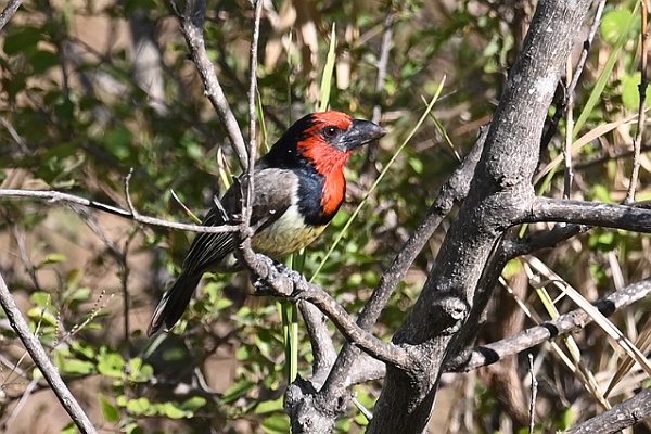 De zwarthalsbaardvogel gezien vanuit de kijkhut.