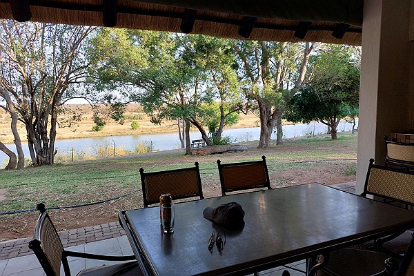 We zijn toe aan wat te drinken waar we ruim de tijd voor nemen, terwijl we tegelijkertijd proberen om het geluid van een nijlpaard op te nemen. We hoeven er op de veranda niet de stoel voor uit te komen, van zo dichtbij komt het geluid. Aansluitend eten we weer een zelfgemaakte maaltijd. Ditmaal gebakken aardappeltjes met antilope worstjes. Toch lekker. Vervolgens nemen we een bakje koffie en kunnen we dan eindelijk een lekkere warme douche nemen gevolgd door een spelletje Yahtzee op de veranda waarna we ook vandaag weer tussen 9 uur en half 10 op bed liggen. Het is voor ons doen een lange dag geweest.